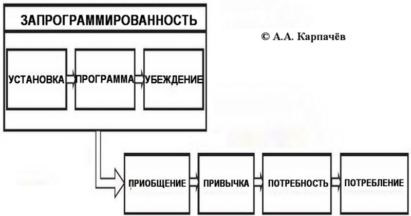 Алгоритм социально-психологического программирования и формирования привычек и потребностей, разработанный на основе метода Г.А. Шичко, показан на Рис. 1.